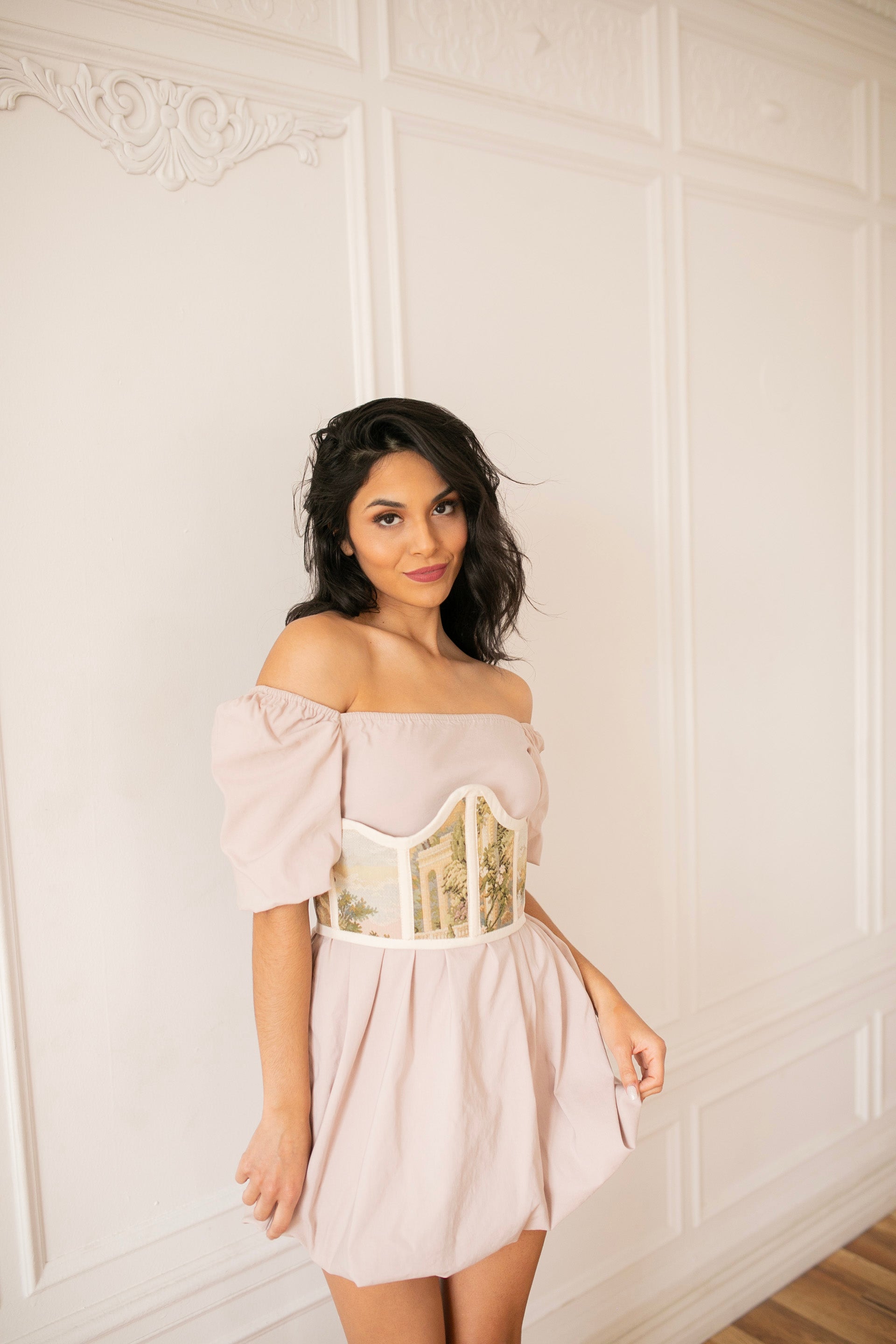 Underbust corset hand made out of imported, Italian tapestry, lined in 100% silk. Adjustable lace-up back, with boning through seams.