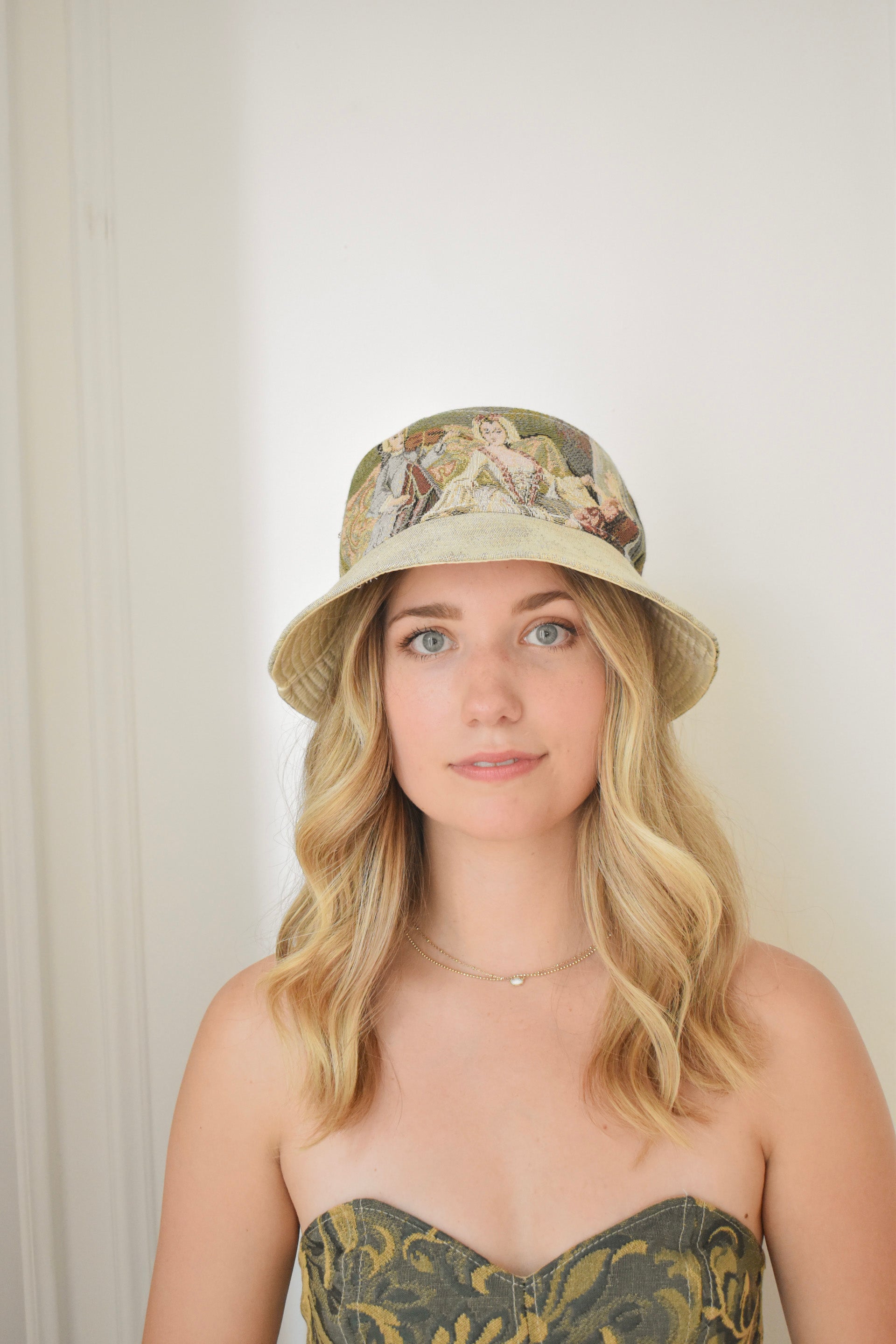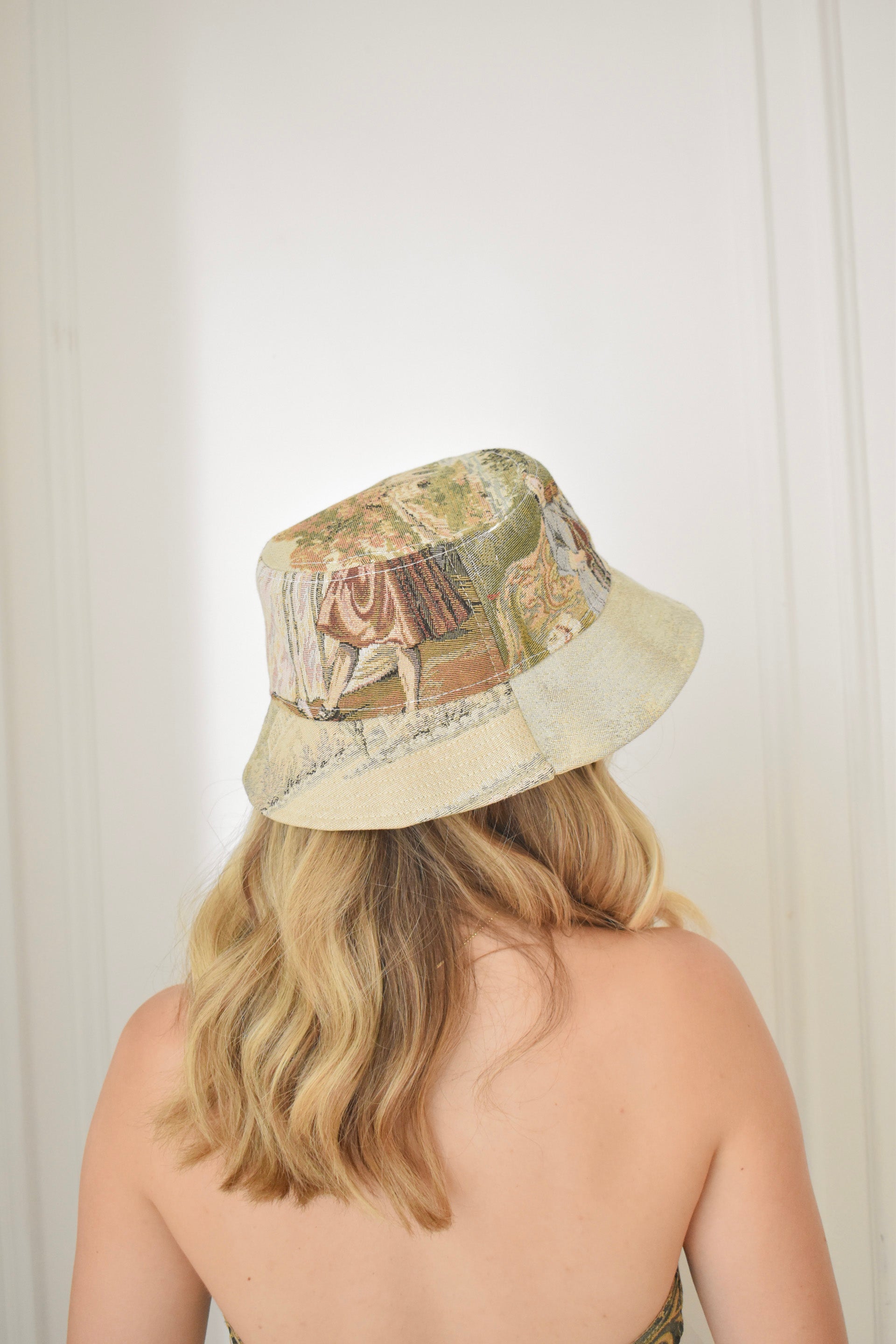Bucket hat hand made out of imported, Italian tapestry. Brim lined with dead-stock, recycled silk.