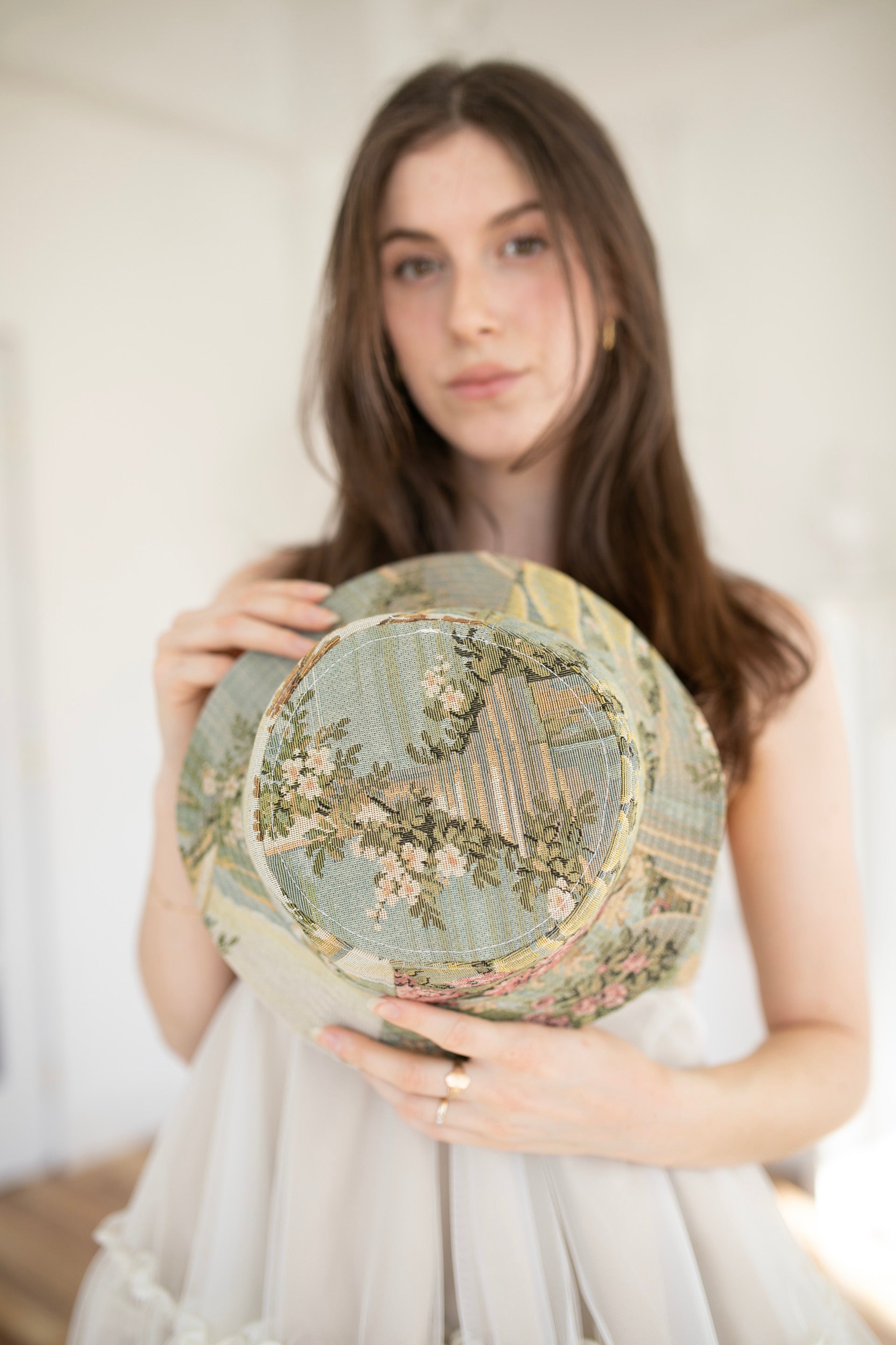 Bucket hat hand made out of imported, Italian tapestry. Brim lined with dead-stock, recycled silk.