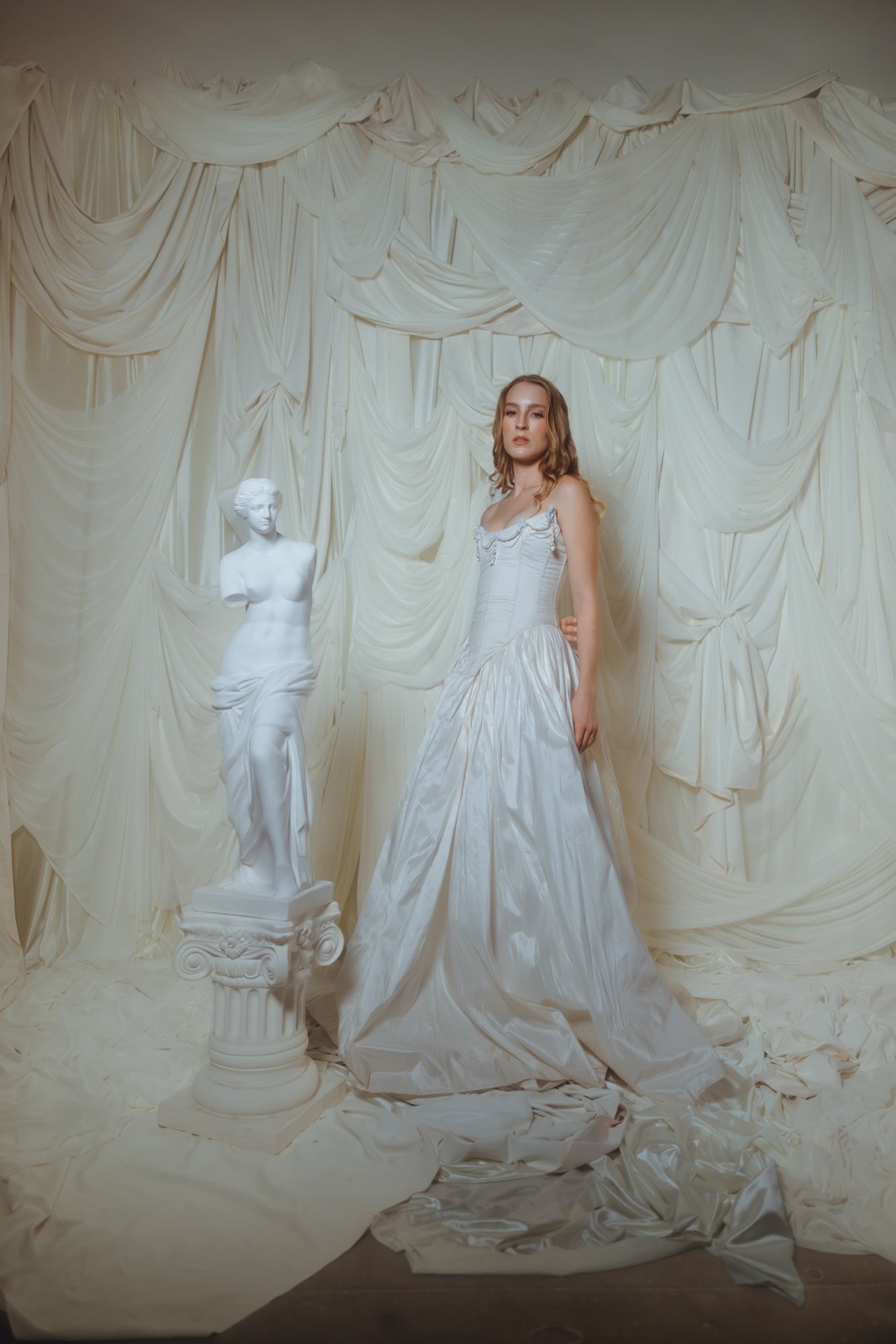 Unleash your inner angel with our exquisite Angel Statue Corset, crafted from luxurious silk and adorned with freshwater pearls, glass beads, and hand poured angel statues. Ethereal and sculpted to perfection, it’s a heavenly blend of elegance and allure.